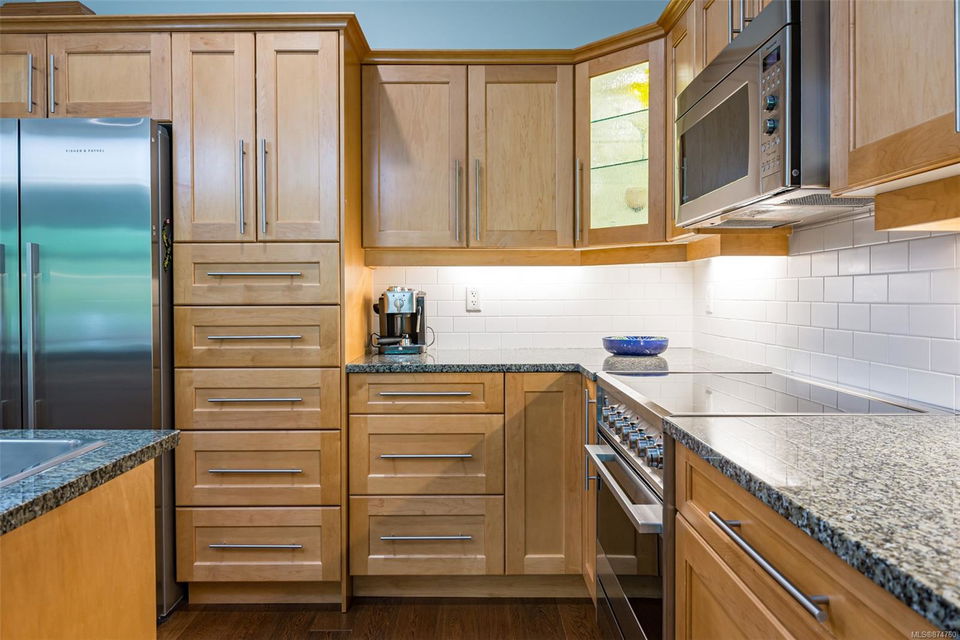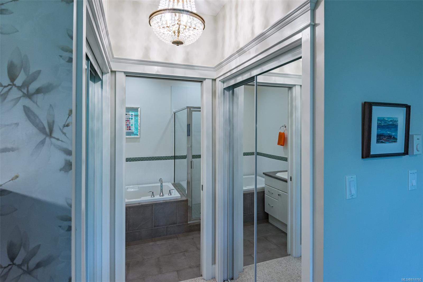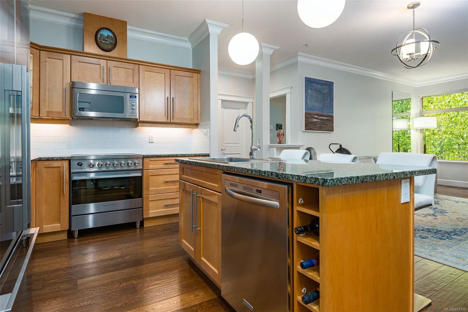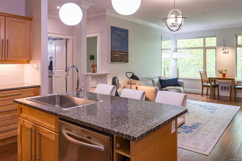 The lighting has been modernized with state of the art LED lighting with elegant fixtures on dimmers to suit tasks and ambiance settings. Kitchen upgrades were carefully repurposed with form and function in mind. New ‘Fisher and Paykel’ appliances further enhance the joy of working in this space. The continual fresh air ventilation in the building eliminates cooking smells. The secure underground parking has closed circuit tv monitoring and there is a storage unit and separate area for bikes and kayaks. Residents have a secure gate to access pathways along the river leading to the Comox estuary, swimming holes and fishing areas. The grounds are lush and manicured. If you yearn for nature, value privacy, crave a peaceful setting yet enjoy amenities close by, this condo is for you.