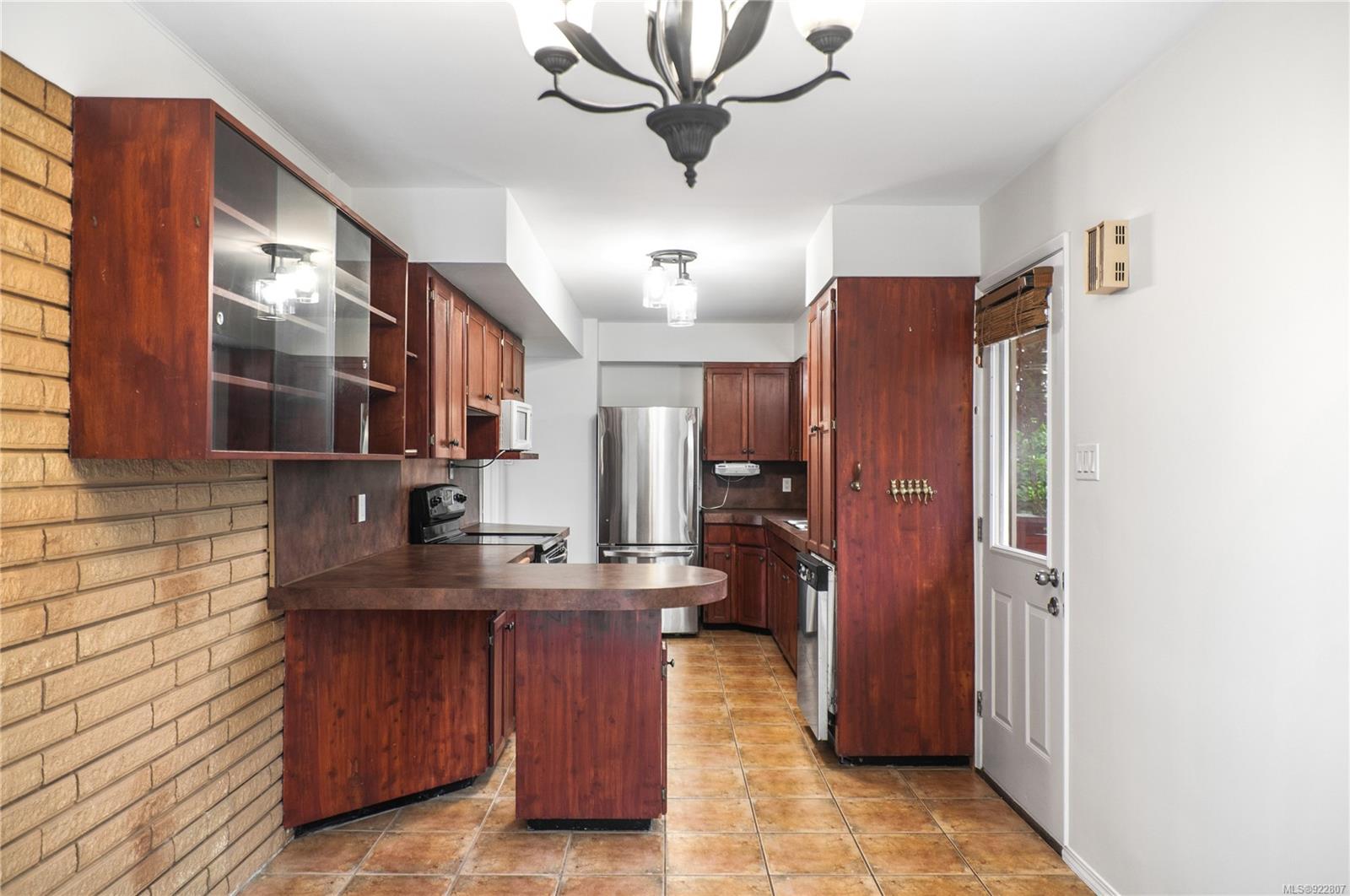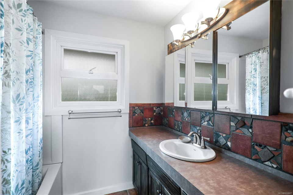 Nicely maintained ocean view, 2,317 sqft, 3 bedroom plus den, 2 bathroom home. Gorgeous Southeast windows showcasing the ocean view from almost any room. Great sized family room on the lower level suitable to convert into a suite. Cozy wood burning fireplace in both the living room and den. Large ocean view deck with access from the main level for morning sun, plus a newer deck and backyard for basking in the afternoon sun. Raised garden beds, garden shed and beautiful sitting area. All with laneway access, additional parking and even more raised garden beds on the side of the house. Centrally located; walking distance to bus route, Merecroft shops, schools/college, cinema and Beaver Lodge trails. The potential is endless!
