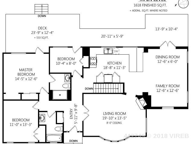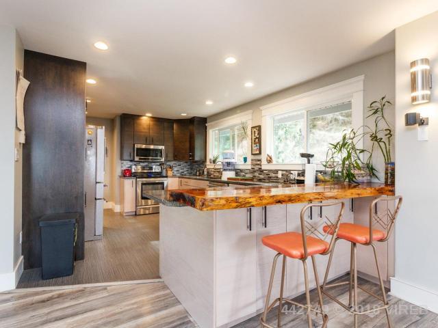 Great value Departure Bay west coast inspired family home with partial ocean views. Situated on quiet cul-de-sac street steps to Linley Valley ridge walking trails and mins to beautiful Departure Bay beach. Plenty of updates including new fiberglass roof (12k), New kitchen, appliances, hot water tank, as well as wood-burning insert and much more. Some finishing work could still be completed and with a few changes, this large walkout basement with 7’8″ ceiling height and 200 amp service could potentially be converted to a suite as a mortgage helper. This home has a large and beautiful kitchen, with Sequoia wood bar seating, heated floors, and newer appliances. Generous sized living and family room with plenty of natural sunlight. With 3 bedrooms up & master bdrm that features a nice ensuite bathroom and access to a large back deck with quiet privacy and large 9710 sq ft lot.