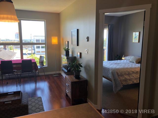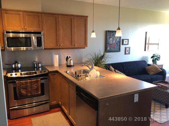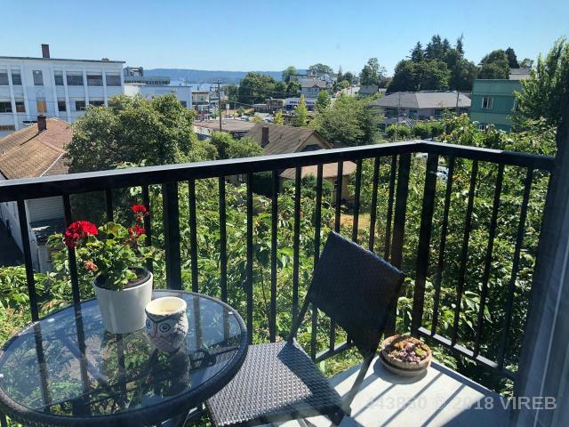**Investment Alert. Cozy 495 sq foot 1 bedroom unit with peekaboo ocean views right in the heart of trendy Old City Quarter of downtown Nanaimo. Large and bright thermal windows with 3rd floor living and inviting patio. Surprisingly spacious layout including stainless steel upgraded appliances. Electric fireplace, ensuite washer/dryer, hardwood floors. Modern designed 10-year old concrete and steel building. Easy to rent, excellent strata with low $141.00 a month fees. Close to the university, seawall, and shopping. Added features include storage, secure underground parking for 1 car with street parking available. New upgraded fitness room and onsite security. Pets ok, Rentals ok. All data and measurements are approximate and must be verified if fundamental.