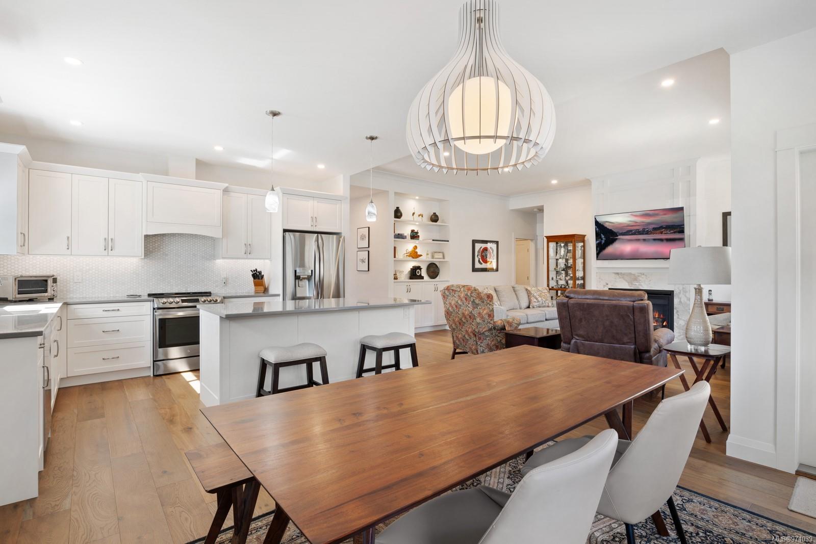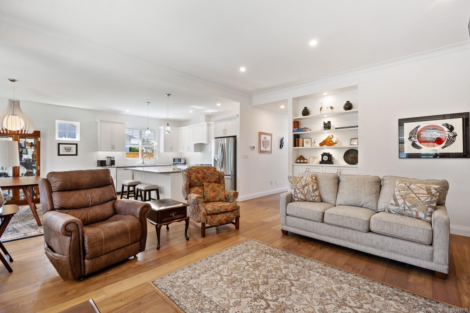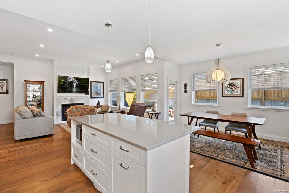 Enjoy the comforts of a tankless water heater, gas heating and fireplace, and a dedicated AC unit for year-round climate control. The interior boasts engineered hardwood floors and custom built-in cabinets in both the walk-in closet and living room. The deluxe kitchen features sleek Shaker Cabinets with LED lighting, quartz countertops, and an induction stove. Unwind in the primary bedroom retreat, complete with a generous walk-in closet and a luxurious 4-piece ensuite featuring a tiled shower. Situated in a coveted neighbourhood, this home promises a premium living experience and is a must-see for those seeking the perfect rancher. Measurements approximate