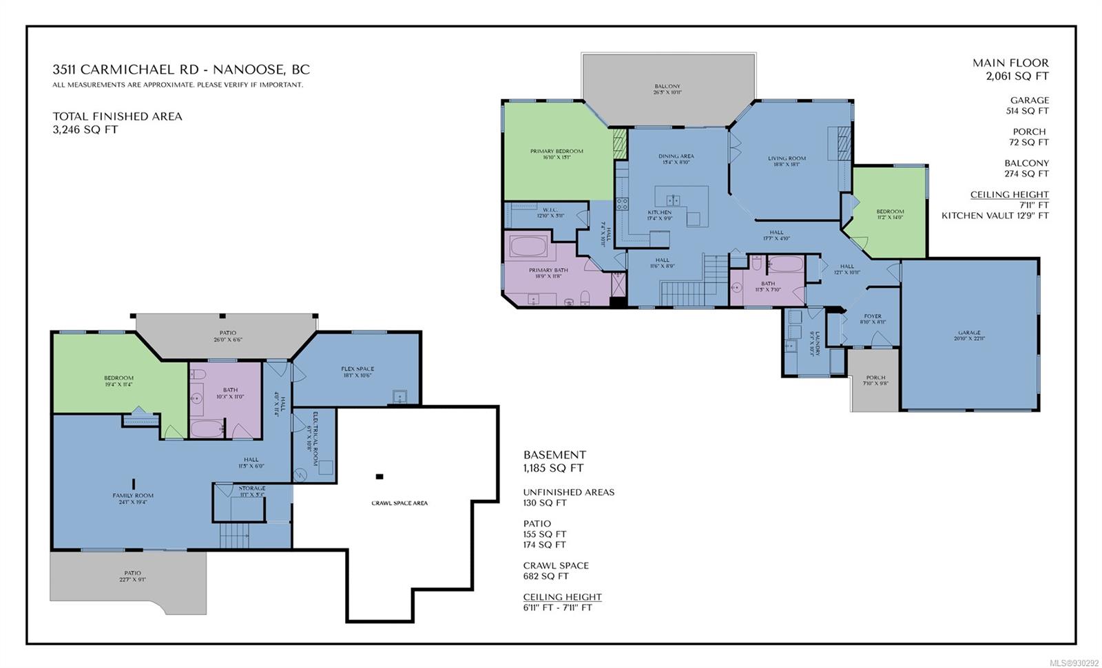 Experience luxury at 3511 Carmichael Rd, Nanoose Bay, in the prestigious Fairwinds community. This 3-bed, 3-bath semi-custom home boasts 3,246 sq ft, east-facing ocean views, and .38-acre property. The main level features maple hardwood floors, vaulted kitchen, quartz countertops, and gas fireplace. Skylights and large windows provide natural light and showcase Strait of Georgia views. The spacious master suite offers an ensuite bathroom, jacuzzi, walk-in closet, gas fireplace, and deck access. A second bedroom, 4-piece bathroom, laundry, and office nook complete the main level. Downstairs, discover a family room, storage area with conversion potential, a large bedroom, and 4-piece bathroom. Enjoy outdoor living on the large balcony and east-facing backyard. New heat pump/furnace 2019. Endless outdoor activities await, including boating, kayaking, swimming, and walking trails. Can be purchased with adjoining lot 22 Collingwood (MLS # 930397). Make this dream island home yours today.