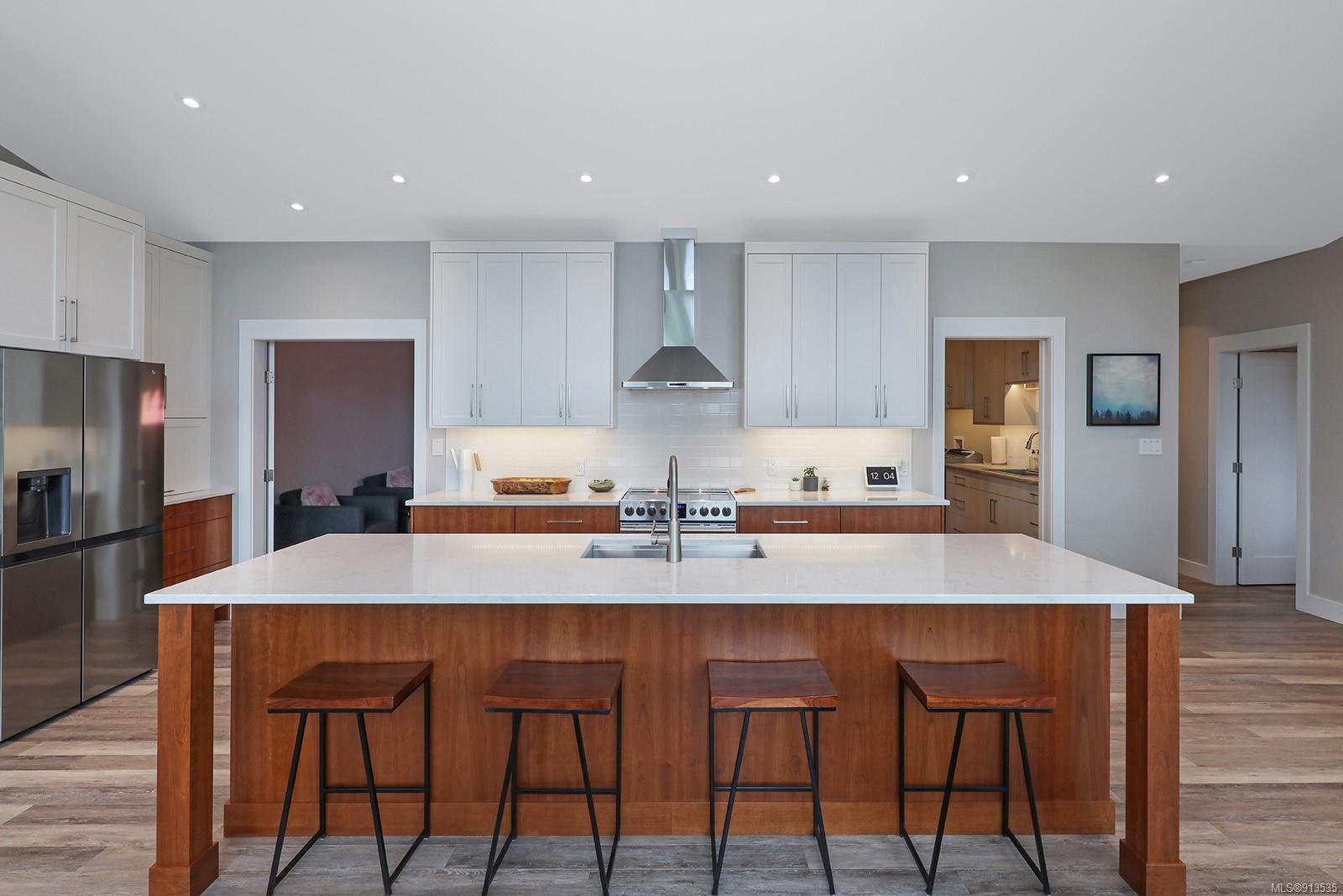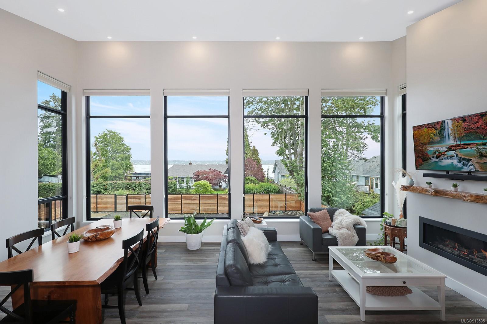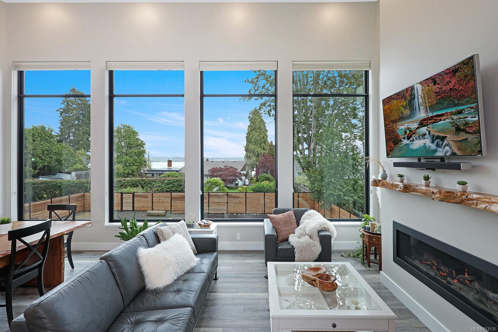 Welcome to 3944 Island Hwy S – This remarkable professionally built custom home has so much to offer. It was built with the utmost attention to detail with stunning mountain and ocean views. It boasts main floor living with an inlaw suite on the lower level and 1 bedroom carriage house. Quality and craftsmanship are evident throughout this home. With massive north-facing windows, high ceilings, neutral colours and wood accents this home is bright and inviting. From the comfort of the living room, you can relax by the cozy fireplace with maple live edge mantel and watch the whales swim by and eagles soar overhead. Enjoy hosting in this chef’s dream of a kitchen, complete with quartz counter tops, custom cherry wood cabinets, and a large island. Relax in your spa-like ensuite with a tiled walk-in shower and custom cabinets. Soundproofing has been installed on many interior walls with solid doors to enhance the peacefulness of this fantastic home. Downstairs you will find a full inlaw suite, studio and gym. The massive outside deck was built with a heavy-duty vinyl covering, complete with a natural gas firepit. There is also a 1 bedroom carriage house that includes its own laundry, parking and air conditioning. The list keeps going on and on for this property’s spectacular features. You must see this amazing home for yourself to see the incredible design.Soundproofing has been installed on many interior walls with solid doors to enhance the peacefulness of this fantastic home. Downstairs you will find a full inlaw suite, studio and gym. The massive outside deck was built with a heavy-duty vinyl covering, complete with a natural gas firepit. There is also a 1 bedroom carriage house that includes its own laundry and parking. Seriously, the list keeps going on and on for this property’s spectacular features. You must see this amazing home for yourself to see the incredible design.