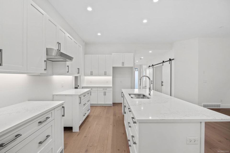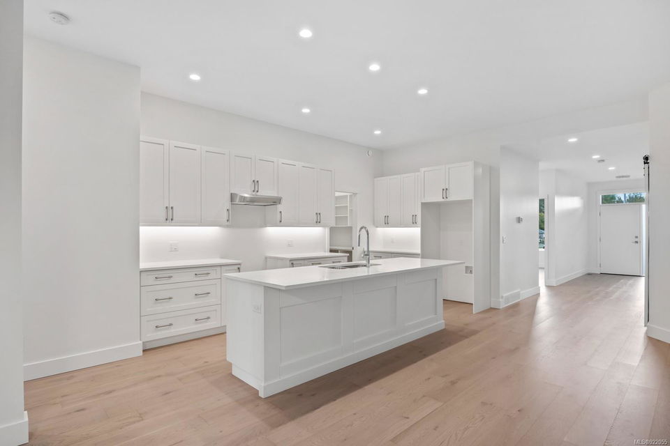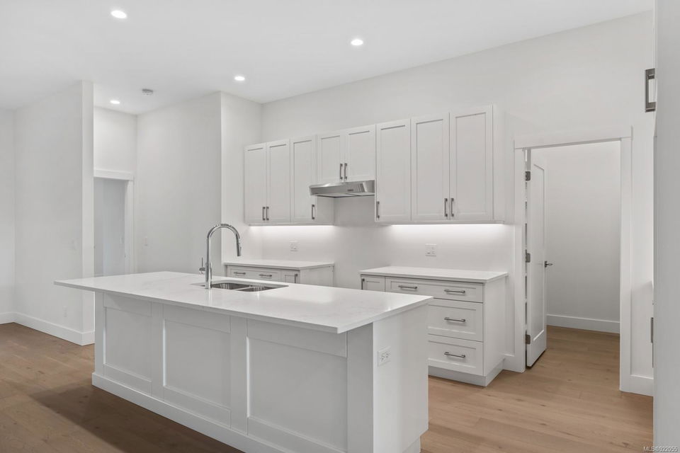 Standard specs by now include quartz countertops, maple cabinetry, heated tile bathrooms, oak hardwood,