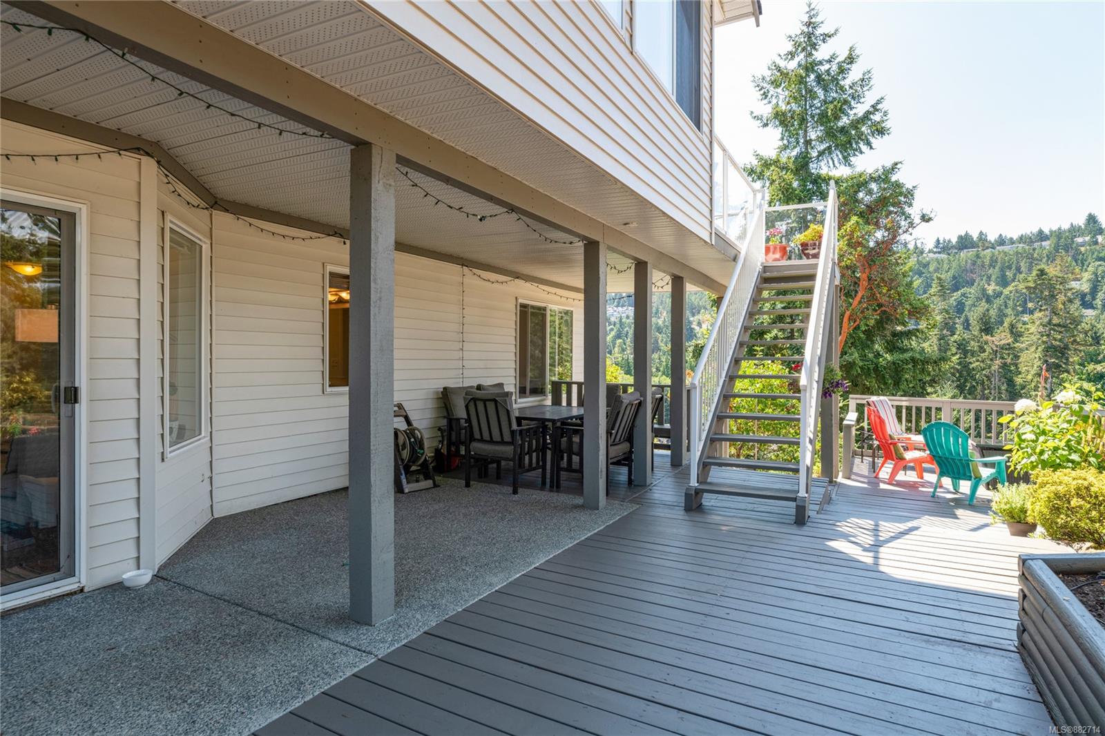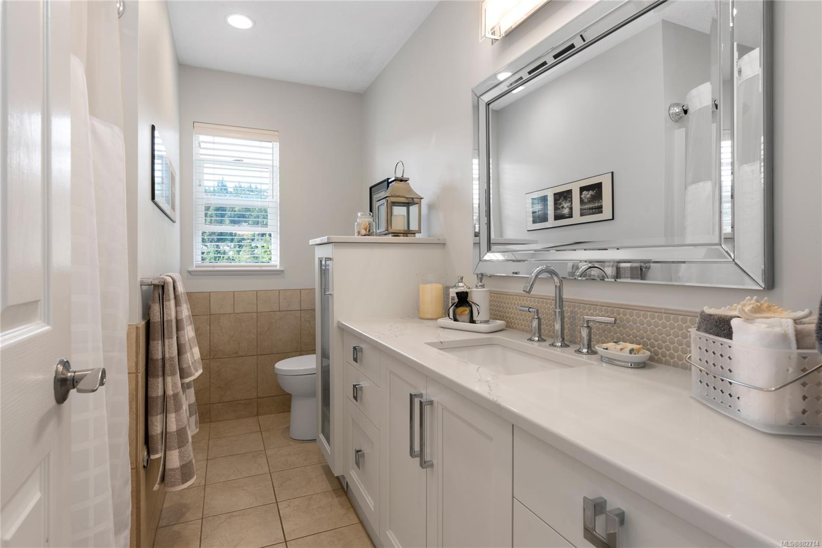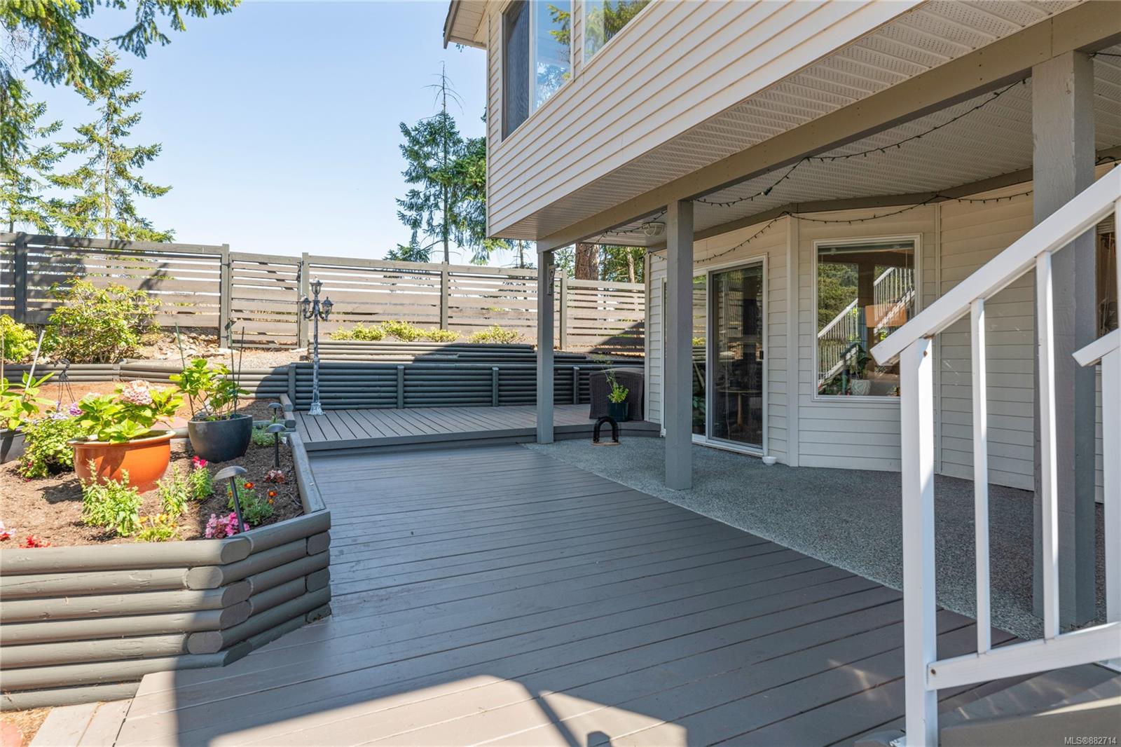 Welcome home to your fully renovated North Nanaimo oasis! This tastefully designed property encompasses privacy on its quiet cul-de-sac street and expansive Rocky Point views from the beautiful backyard sanctuary. With next-level finishes and updates of over $110,000. This exquisite 5 bed 3 bath home has a walkout in-law suite and private entrance that could help with mortgage payments or provide space for family and guests. Be greeted by stunning attention to detail in the light-filled, open concept kitchen with Caesarstone Quartz countertops, solid wood Merit cabinetry, hardwood maple floors and Nuheat floor heating in the ensuite bathroom and entry hallway. Enjoy a spacious double-car garage and RV parking for your toys. The property is situated close to schools, shopping & beaches. This is truly an oasis in the City where outdoor beauty combines with a comfortable, inviting home. Ask your realtor for a full list of updates made to the home. All data & measurements are approximate.
