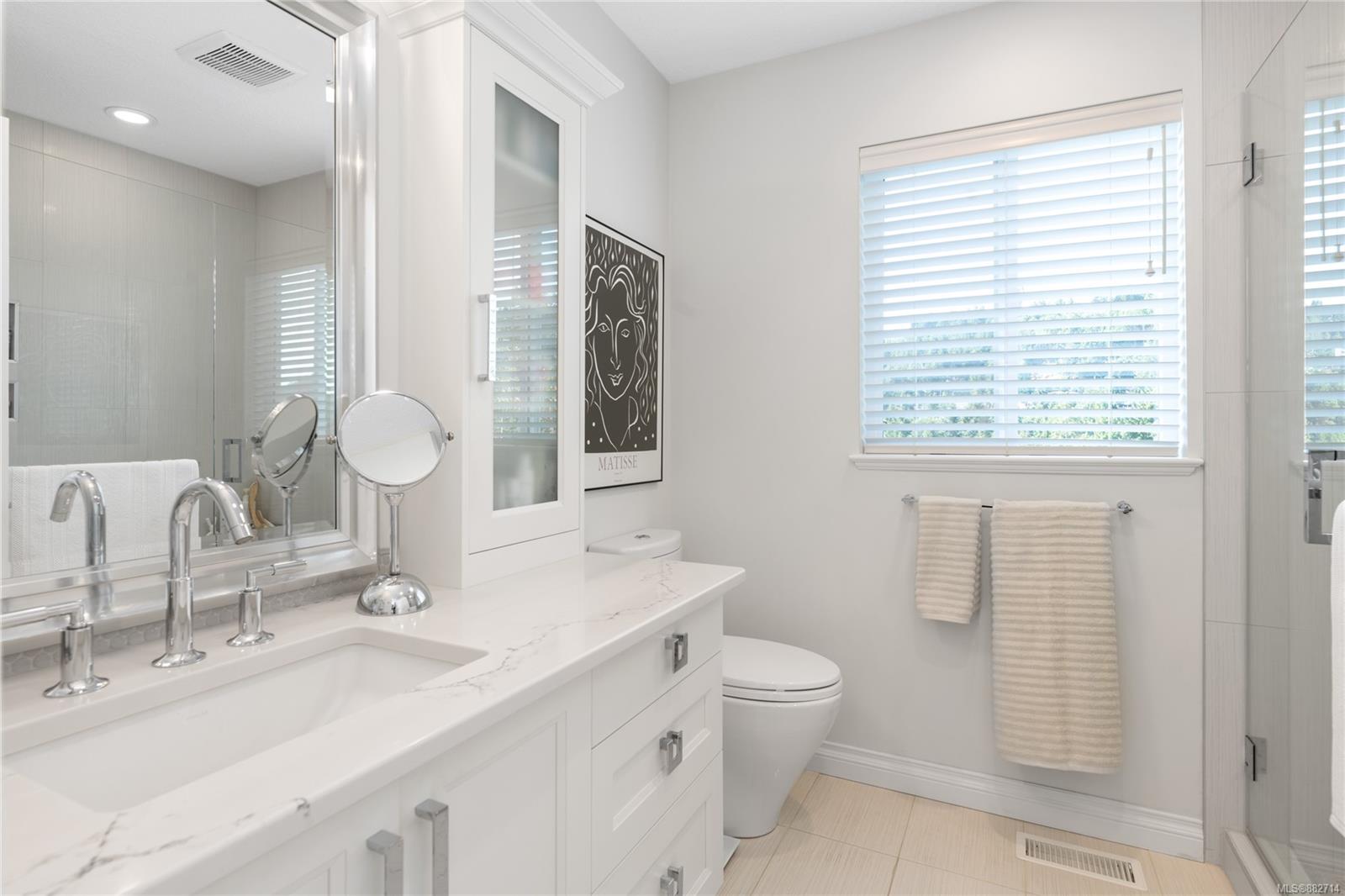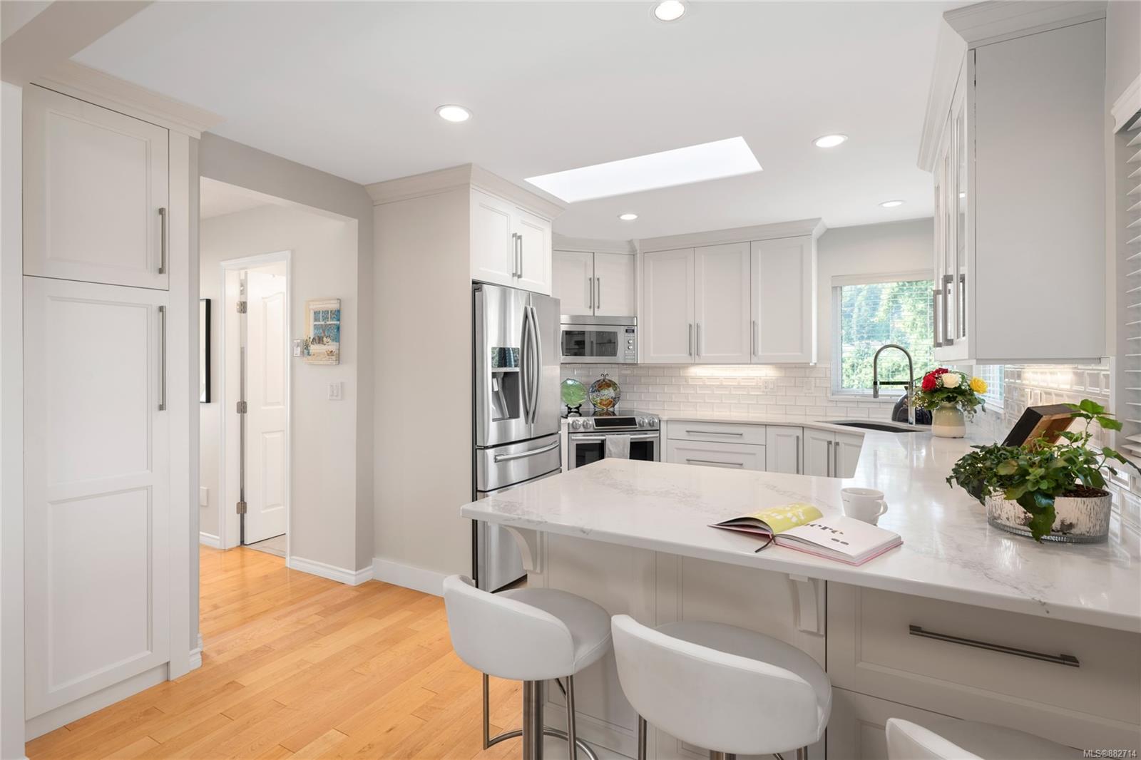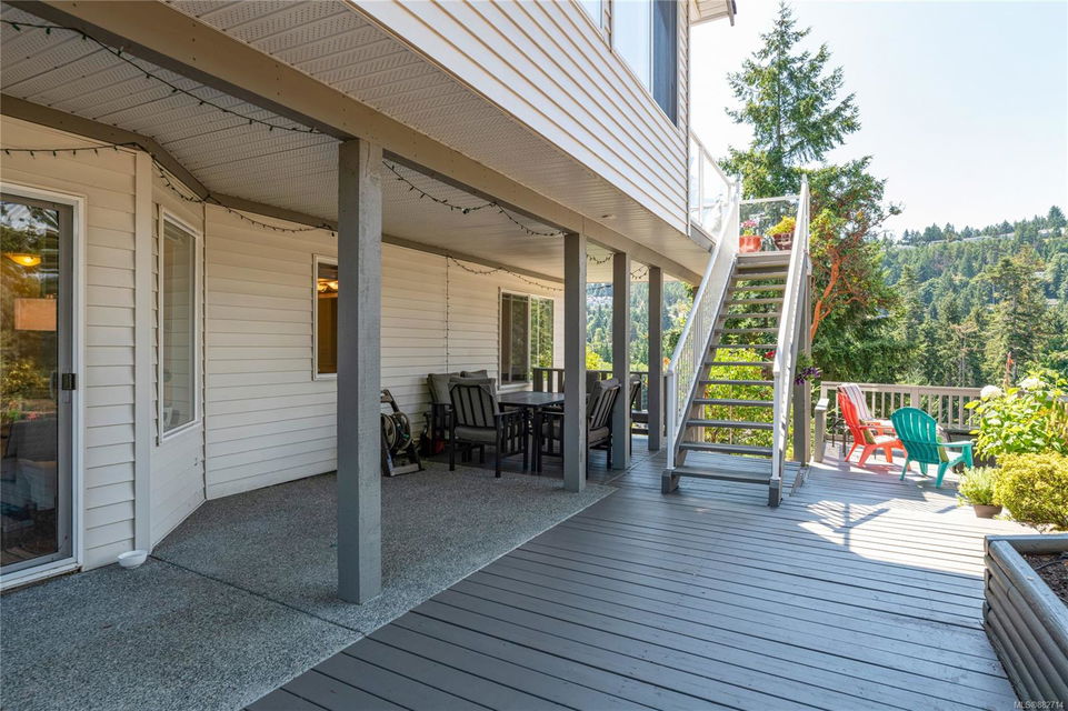 Welcome home to your fully renovated North Nanaimo oasis! This tastefully designed property encompasses privacy on its quiet cul-de-sac street and expansive Rocky Point views from the beautiful backyard sanctuary. With next-level finishes and updates of over $110,000. This exquisite 5 bed 3 bath home has a walkout in-law suite and private entrance that could help with mortgage payments or provide space for family and guests. Be greeted by stunning attention to detail in the light-filled, open concept kitchen with Caesarstone Quartz countertops, solid wood Merit cabinetry, hardwood maple floors and Nuheat floor heating in the ensuite bathroom and entry hallway. Enjoy a spacious double-car garage and RV parking for your toys. The property is situated close to schools, shopping & beaches. This is truly an oasis in the City where outdoor beauty combines with a comfortable, inviting home. Ask your realtor for a full list of updates made to the home. All data & measurements are approximate.