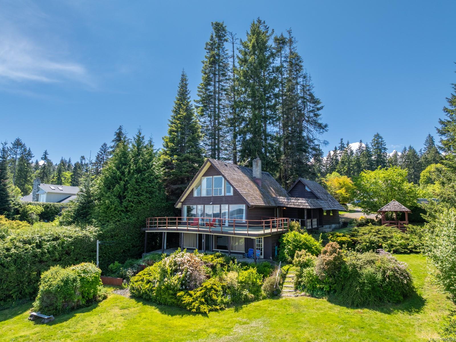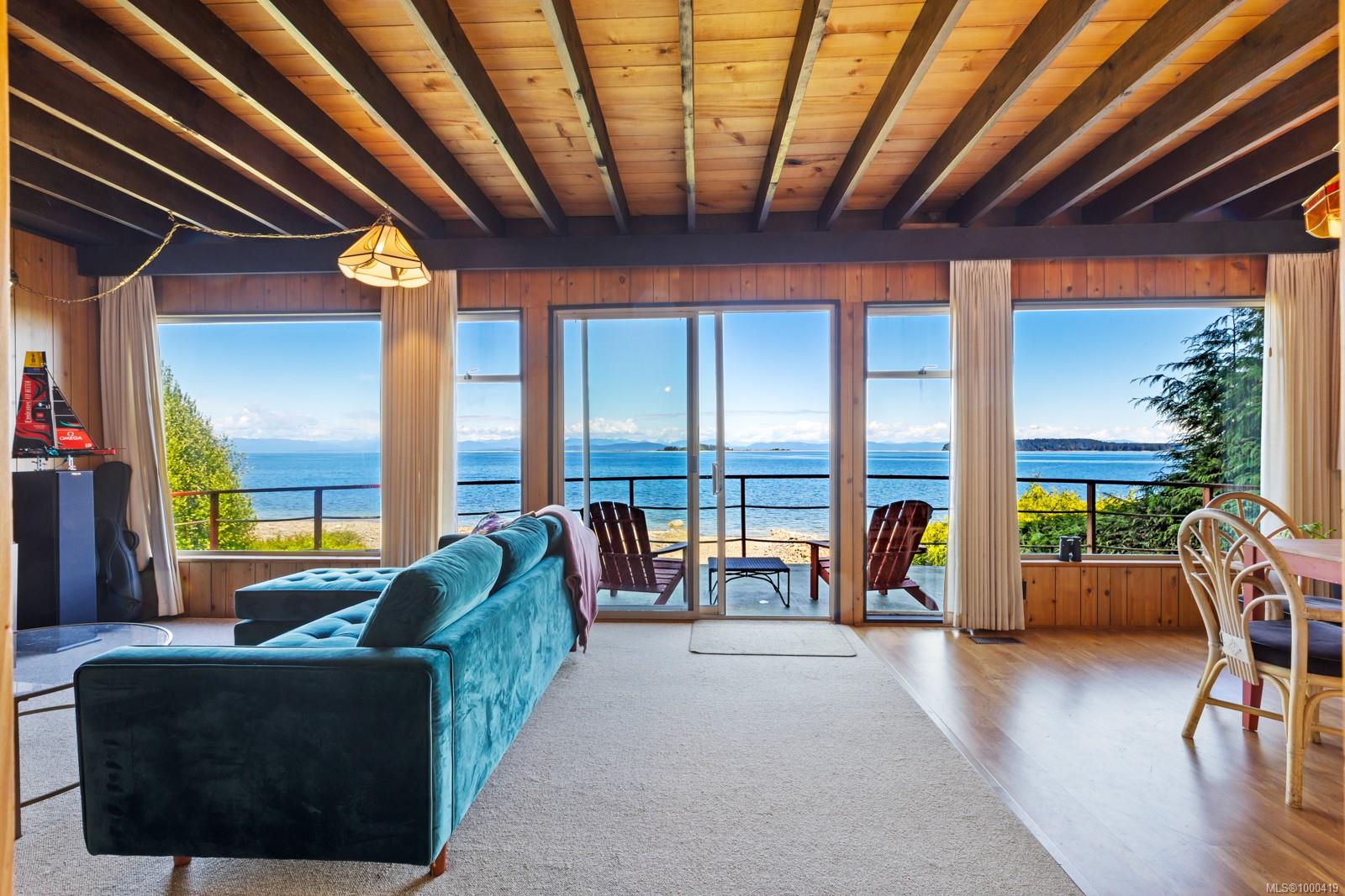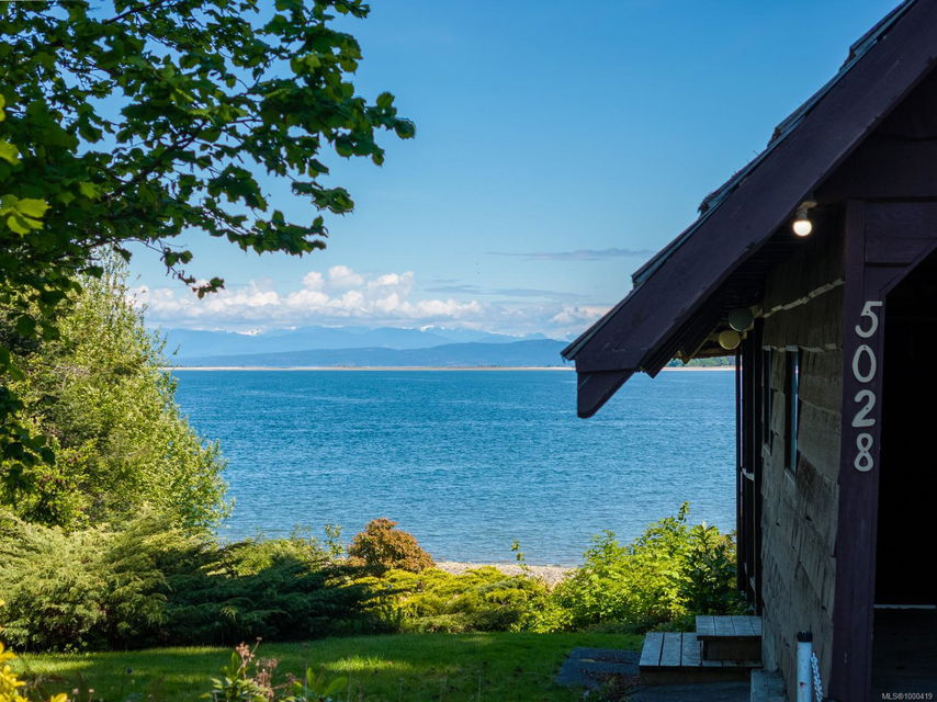 Rare 125 ft of walk-on waterfront on a 26,136 sq ft lot—ready for your dream build! Located on a quiet no-thru road with no traffic noise—an incredibly rare find for oceanfront in the Comox Valley. Over $40K has been invested in permits and reports including engineering, environmental, CDP, the KFN CHIP Permit, and much more—saving you time and expense. Natural gas was recently installed on the street, and CR-1 zoning allows a secondary dwelling. Enjoy stunning views of Sandy (Tree) Island, Denman, and the mainland mountains while watching eagles, sea lions—even orcas—from your future patio. The 4 bed, 3 bath A-frame has been maintained and offers an opportunity to renovate, rent, or enjoy while you plan. A large, flat area is perfect for beachside activities. Launch your own paddleboard or kayak, swim in calm waters, and take in the beauty of Baynes Sound. Rarely does a property like this come available—where the groundwork is done and oceanfront dreams can truly begin to take shape.
