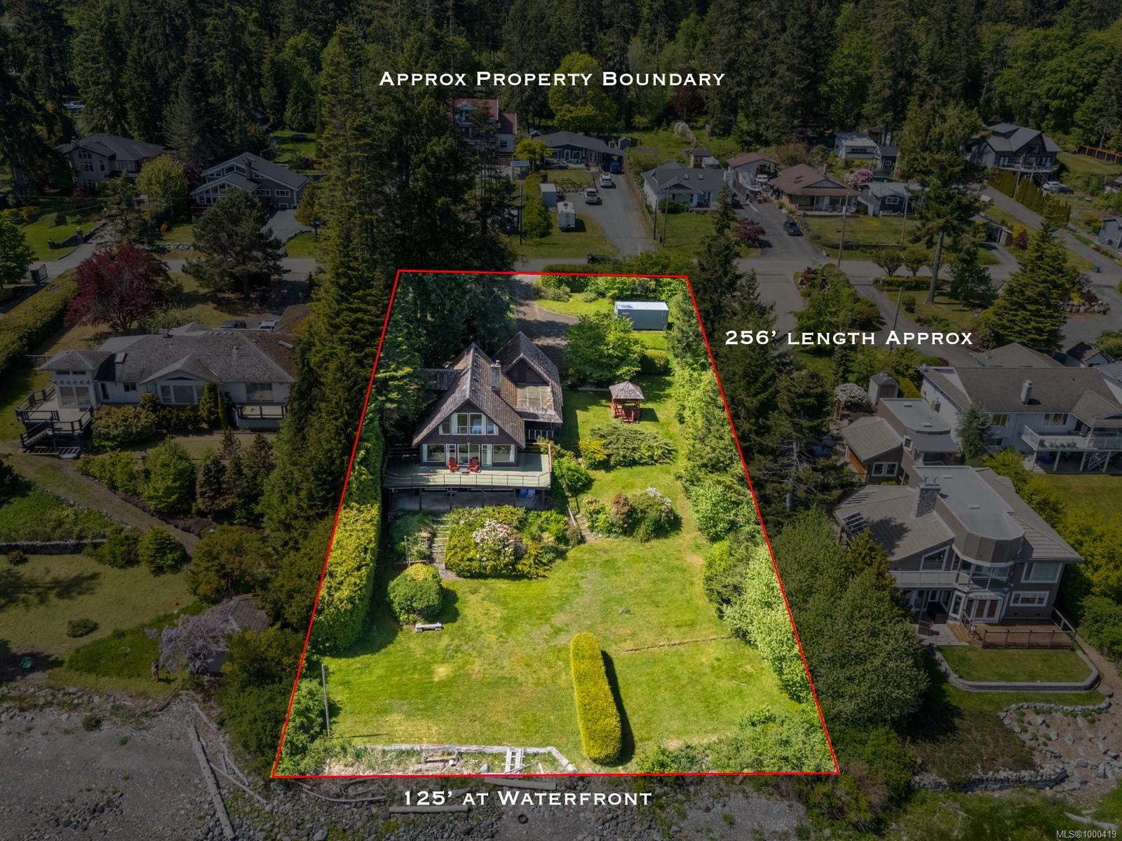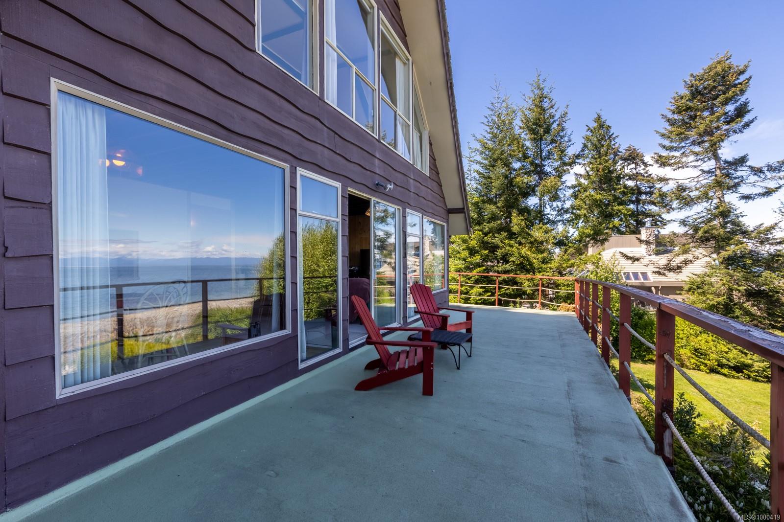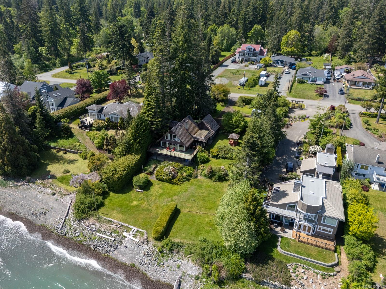 Rare 125 ft of walk-on waterfront on a 26,136 sq ft lot—ready for your dream build! Located on a quiet no-thru road with no traffic noise—an incredibly rare find for oceanfront in the Comox Valley. Over $40K has been invested in permits and reports including engineering, environmental, CDP, the KFN CHIP Permit, and much more—saving you time and expense. Natural gas was recently installed on the street, and CR-1 zoning allows a secondary dwelling. Enjoy stunning views of Sandy (Tree) Island, Denman, and the mainland mountains while watching eagles, sea lions—even orcas—from your future patio. The 4 bed, 3 bath A-frame has been maintained and offers an opportunity to renovate, rent, or enjoy while you plan. A large, flat area is perfect for beachside activities. Launch your own paddleboard or kayak, swim in calm waters, and take in the beauty of Baynes Sound. Rarely does a property like this come available—where the groundwork is done and oceanfront dreams can truly begin to take shape.