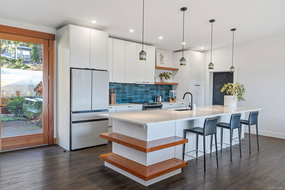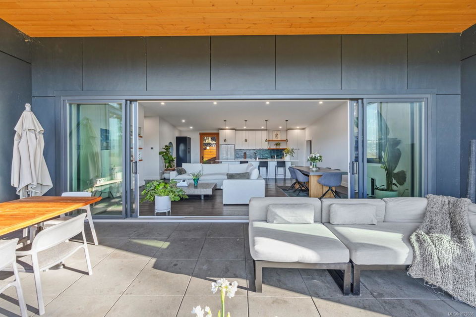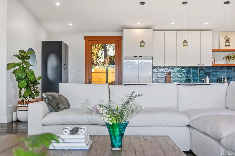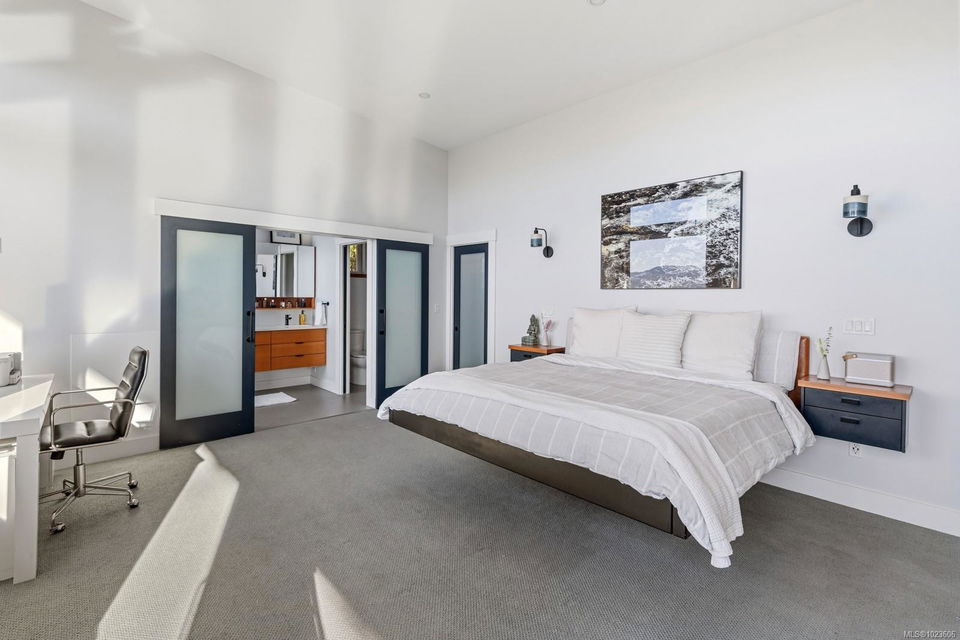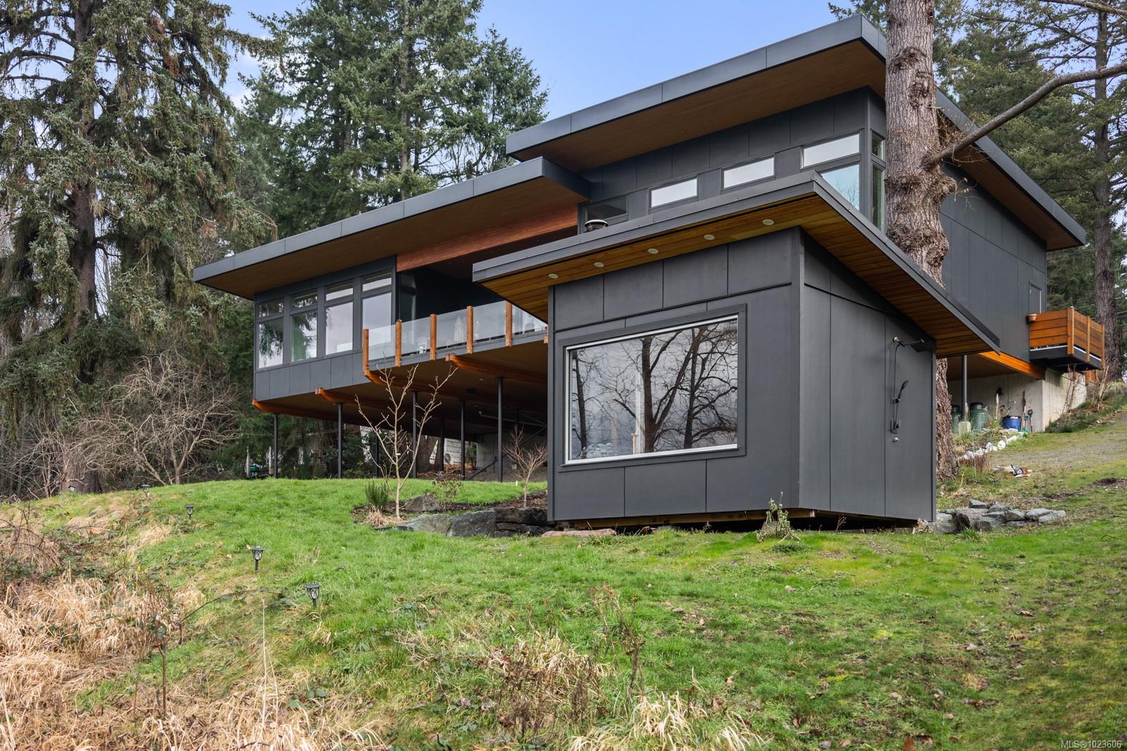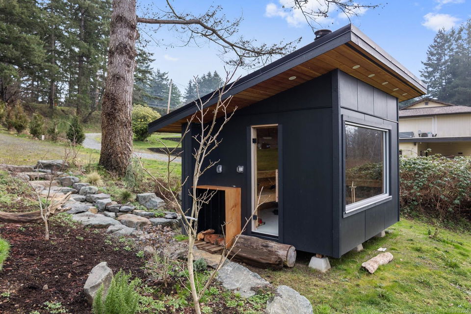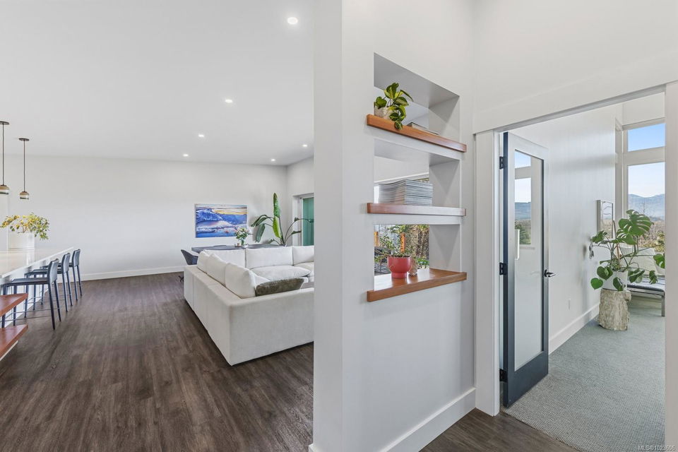 The most beautiful view awaits. This stunning 3-bedroom, 2-bath home is designed to capture breathtaking southwest-facing views of the Comox Glacier and Beaufort Mountain Range, with afternoon sun and unforgettable sunsets. Seamless indoor-outdoor living defines the main living space, where stacking sliding glass doors open wide—perfect for entertaining or relaxing while taking in the scenery. The spacious primary suite offers incredible views, a beautiful ensuite, large walk-in closet, and a floating bed. A massive garage with wood stove and overhead lift provides exceptional versatility for projects, storage, or hobbies. The matching 8-10 person sauna adds an element of wellness for family and guests. Set on a private 1-acre property across three levels, this home is located within the Montessori school catchment, with all levels of schooling—so close to all amenities, yet far enough out of town to enjoy space, comfort, and privacy.